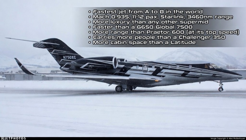 The X+ Luxe is proven to be the fastest civilian jet in the world from A-to-B using over 439,000 of real-world flight data reported by the planes themselves. It is faster than the G650, G700, and Global 7500. It is likely also faster than the Global 8000 despite manufacturer claims about its higher top-speed of Mach 0.95. There is a profound difference between top speeds (or MMO), which are typically descent tests, and actual top cruise speeds and point A-to-B speed. What we know from the actual flight data is that pilots fly the X+ faster than any other plane, including the Global 7500… Cruising at over Mach 0.92, the X+ actually cruises faster than the F-16 and F-35 fighter jets when they are in cruise mode…